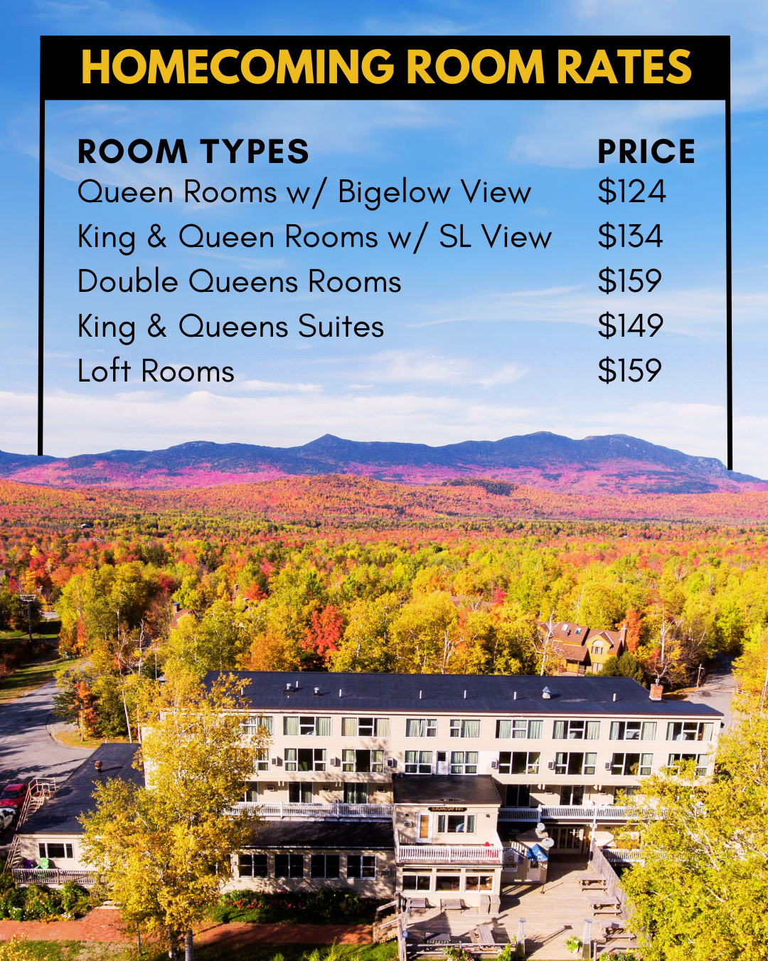 Discover the perfect mountainside escape at Sugarloaf Inn, offering cozy, comfortable, and convenient lodging for couples, families, and groups. Enjoy sweeping mountain views, secure bike storage, and direct access to some of Maine’s best hiking trails.